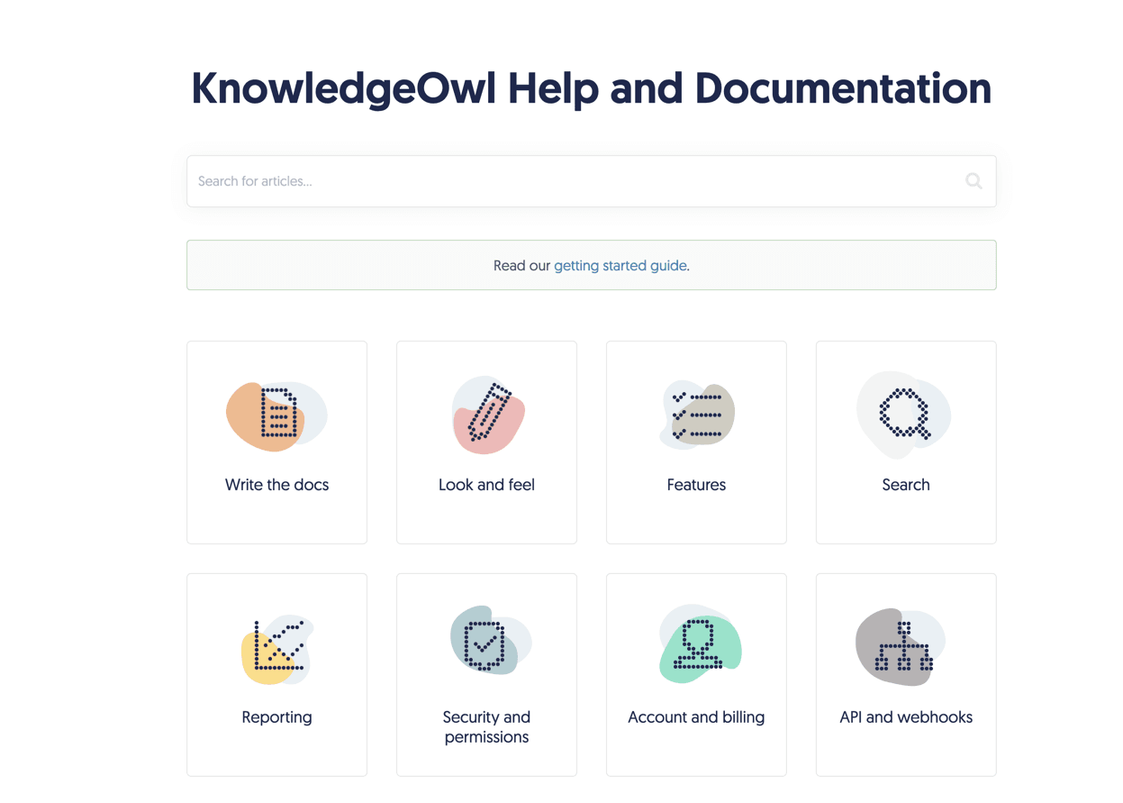 Especially if your knowledge base has a lot of content, a search bar is a vital tool for your users to sort through lots of articles. Your search bar should be prominently displayed on the homepage and ideally accessible from every page.