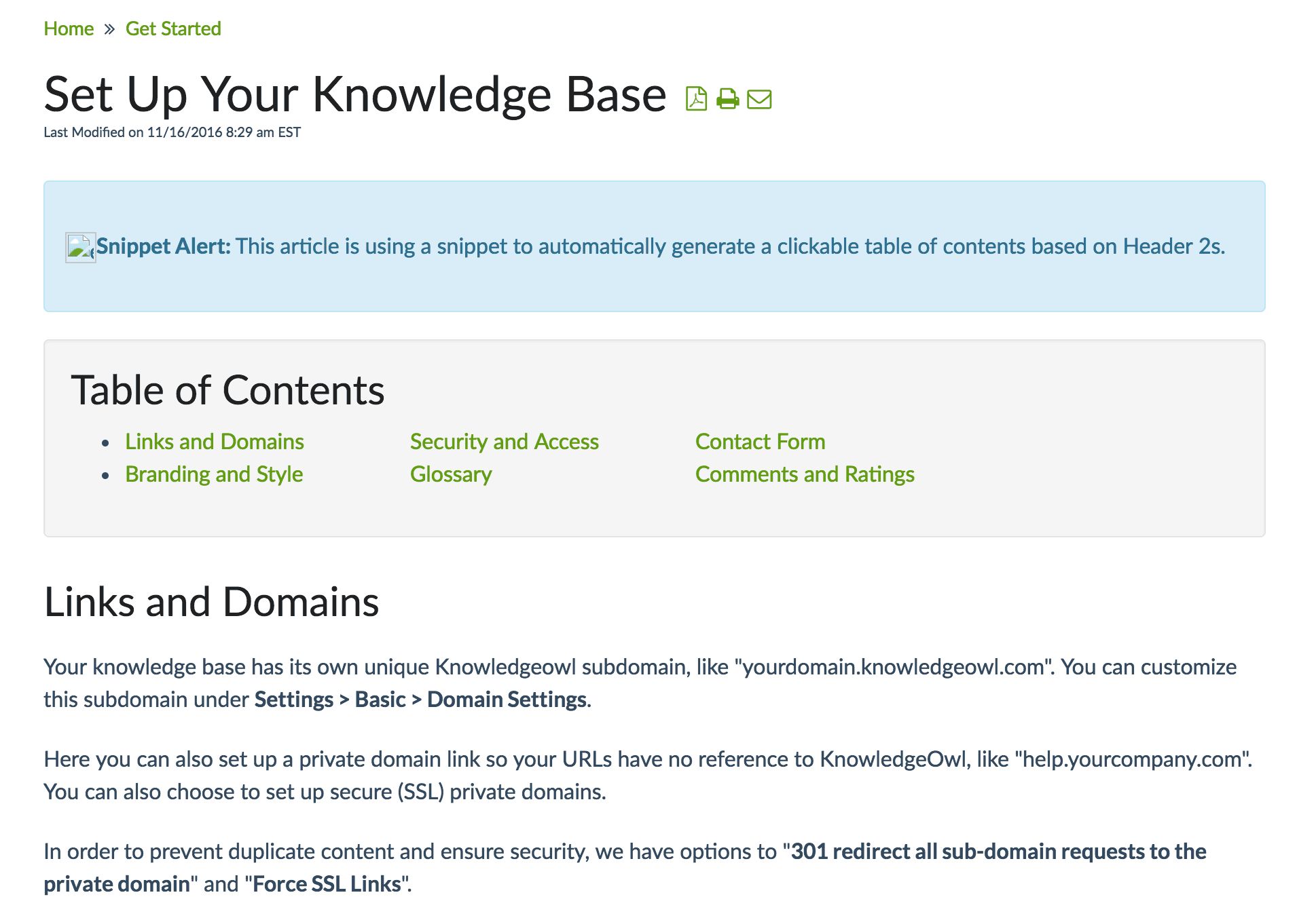 What's interesting about KnowledgeOwl is that in addition to the ability to create a great, out-of-the-box knowledge base, you can also easily customize your knowledge base. A lot of software is either easy-to-use, but hard to customize or customizable but difficult to use. KnowledgeOwl has bridged this gap. With KnowledgeOwl you can hit the ground running and then dig in to all the options for customization.