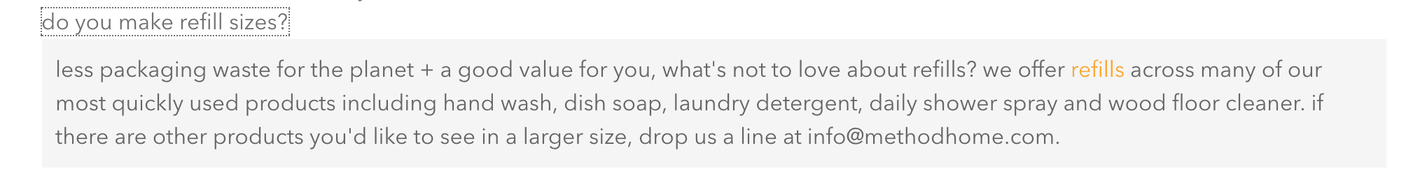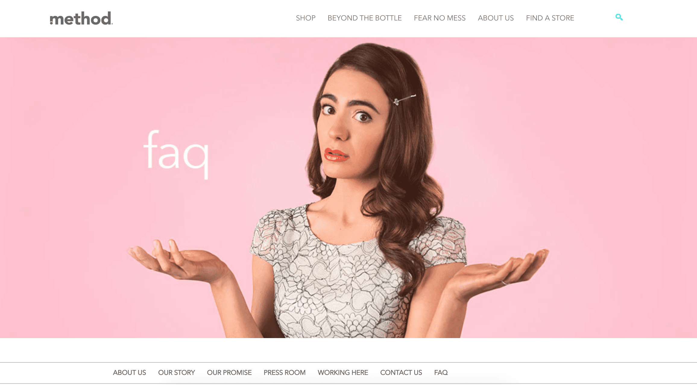 Method is company that sells environmentally-friendly cleaning products. They humbly call their documentation ‘FAQs’ but in reality their knowledge base is rich with useful content.