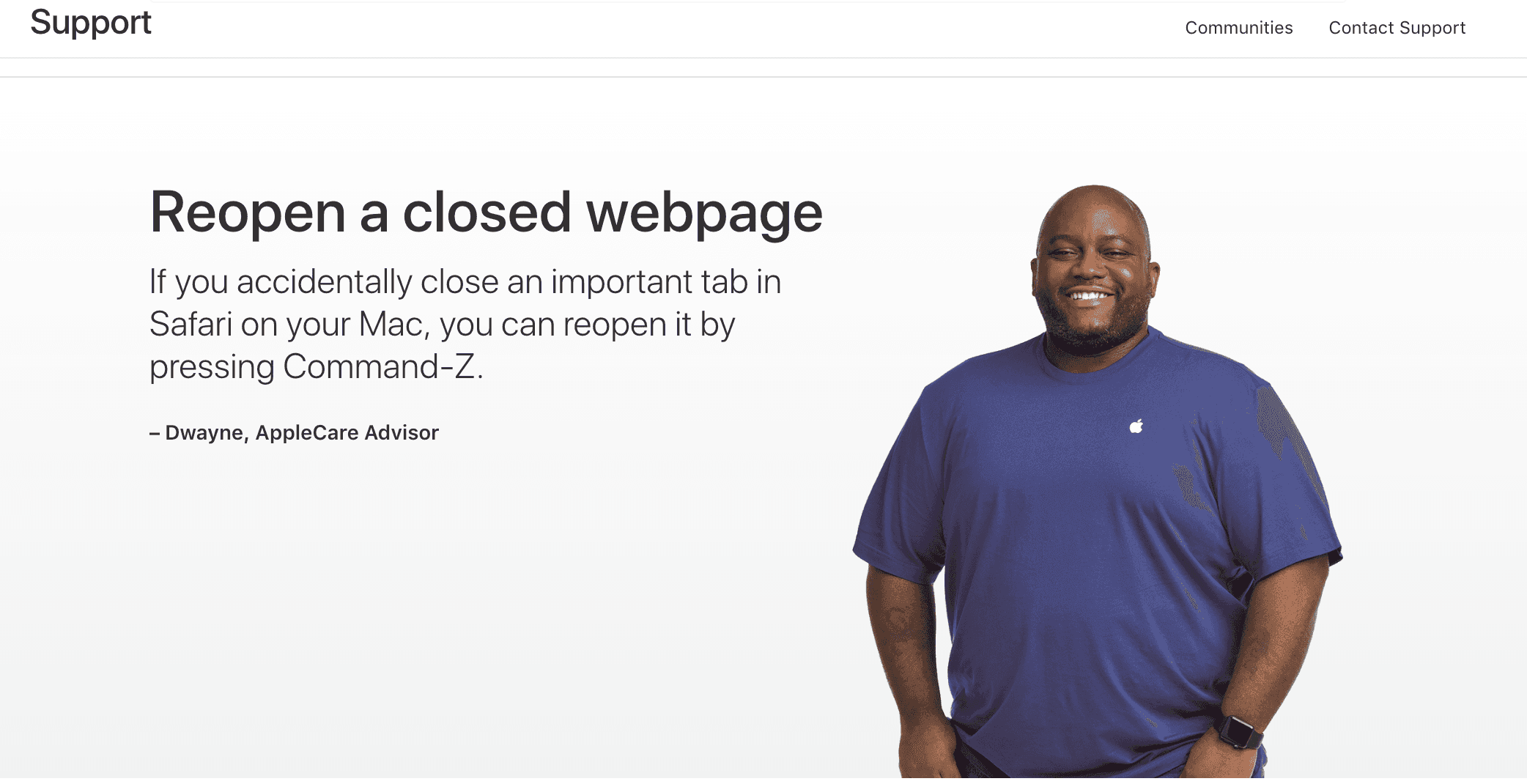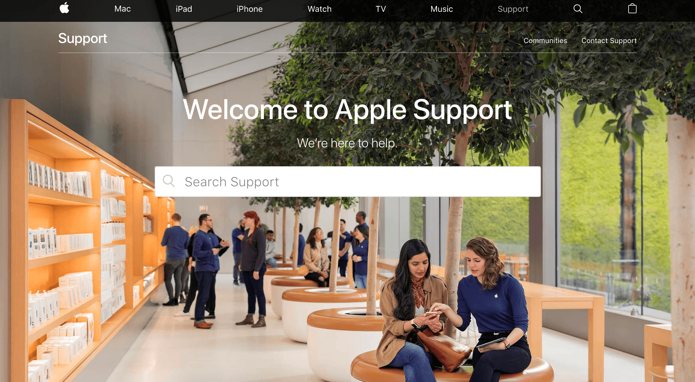 Apple’s knowledge base isn’t just an afterthought tagged onto the dramatic main event. It merges seamlessly with the customer experience and is branded to reflect Apple’s dedication to its customers.