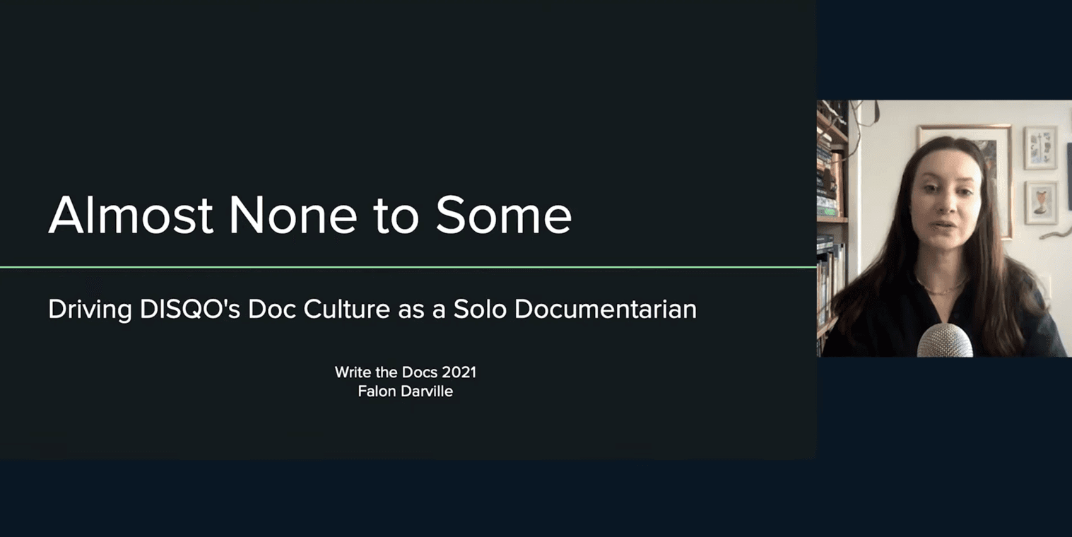Write the Docs: Almost None to Some: Driving DISQO's Doc Culture as a Solo Documentarian – Falon Darville