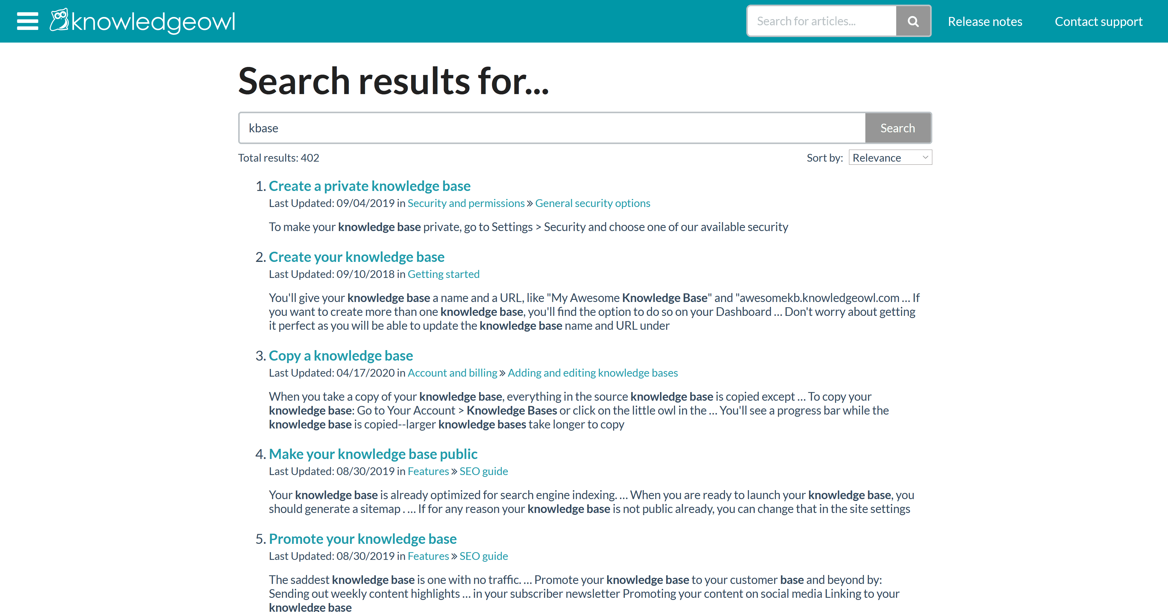 Look back at that screenshot of the search results for "kbase". Did you notice that the phrase "knowledge base" is the highlighted search term in each of those search results contextual blurbs?