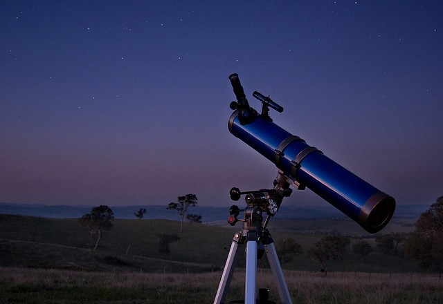 There’s a man, he’s on a hill, which also has a telescope on it.