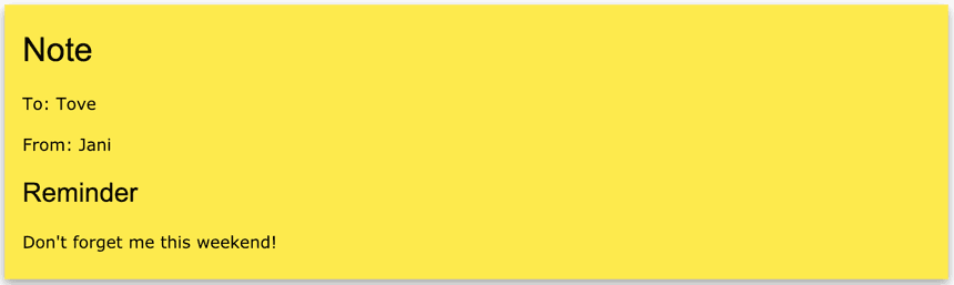 This XML markup content will be fed into a software client, and then result in content that is represented something like this: