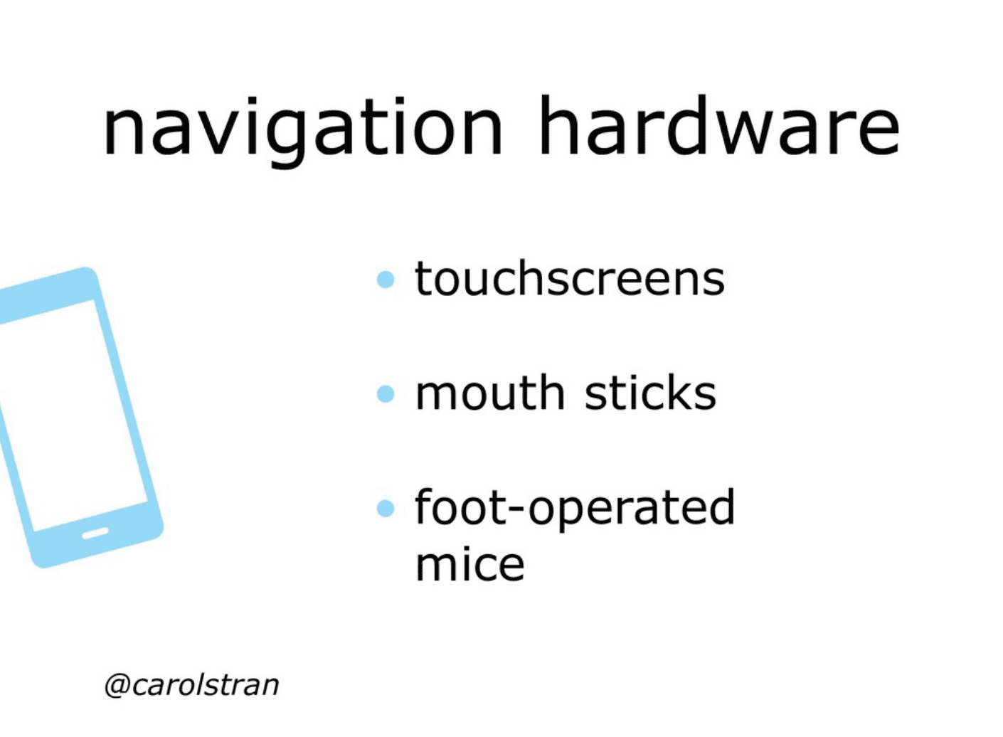The hardware, operating system and software systems are the bridge between your documentation and the end user. These are aspects of a web interface that many people wouldn’t think twice about, and yet they are absolutely crucial for assistive technologies to work.