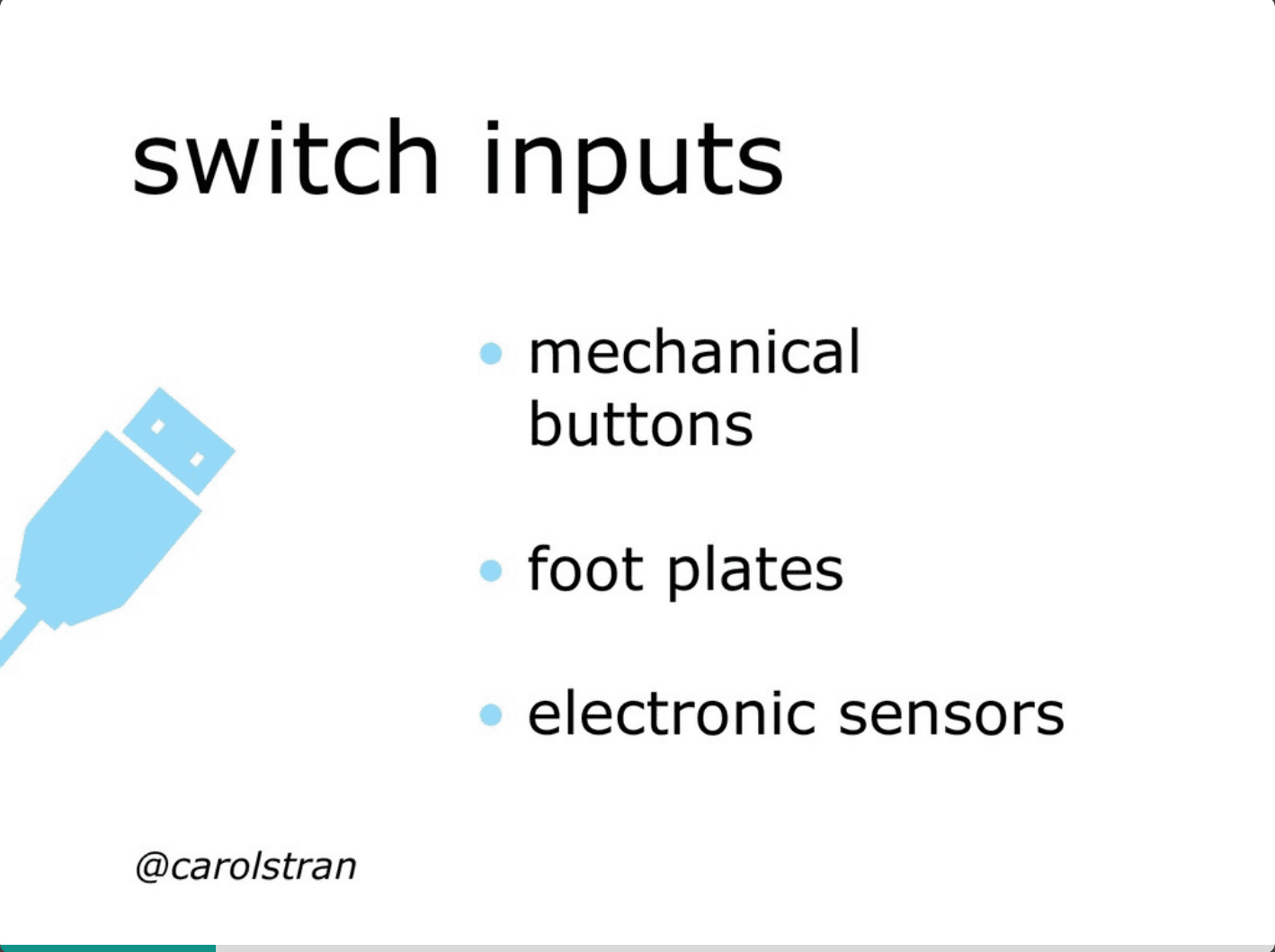 People with physical or cognitive disabilities may also use switches such as mechanical buttons, electronic sensors and foot places to operate their computer.