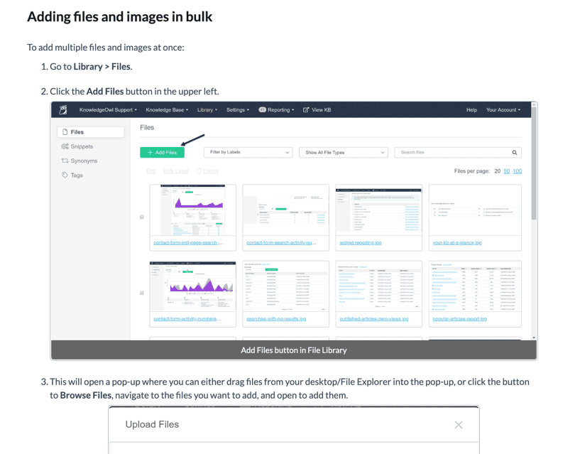 Here’s an example from our own knowledge base using subheadings, images, numbered lists, and bold to refer to User Interface items.