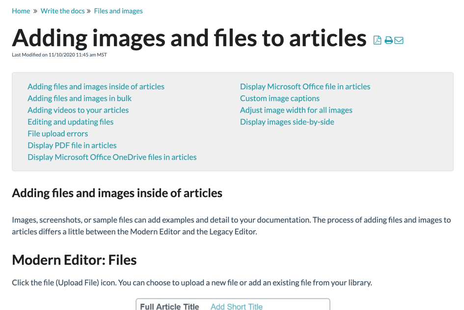 If you use a table of contents, this makes it easier for more advanced users to skip past the content they don’t need and go directly to a solution. You can even use table of contents in normal-length articles so customers can always skip right to the section they’re looking for.