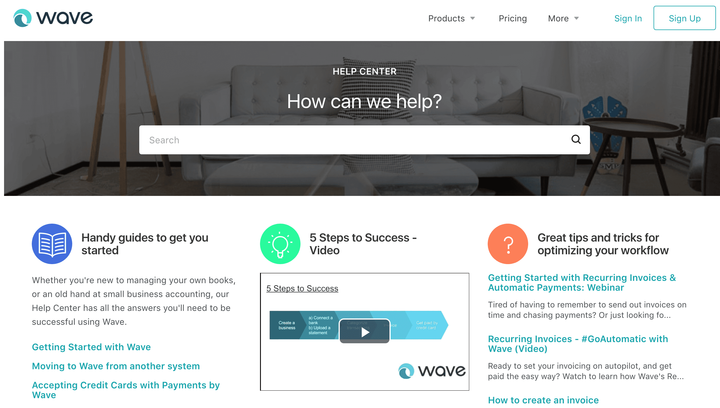 Wave has grouped its content based on its different purposes for the user: getting started, guides and reference.