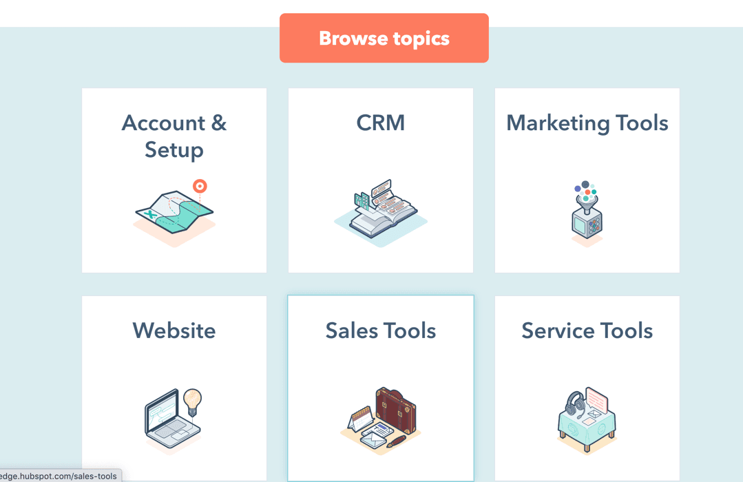 If you deep dive into Hubspot’s knowledge base, you can see that their help content is divided up by product. Their icons are very cute, inviting users to browse further into the knowledge base. The knowledge base is on-brand, and welcomes users who might not know exactly what they’re looking for.