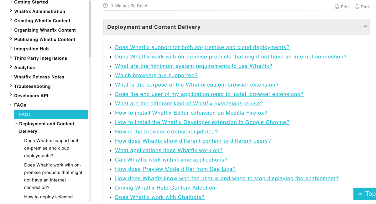 Overall the Whatfix knowledge base is an invaluable resource for customers, answering almost any question you could possibly think of.