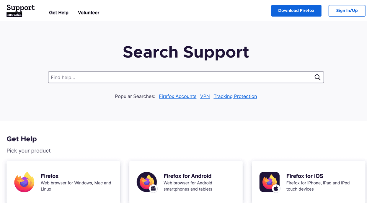 As you dig deeper into Firefox’s knowledge base they provide a simple interface of subcategories to help customers navigate to the content they need. Their documentation is comprehensive which is impressive for an open source company.