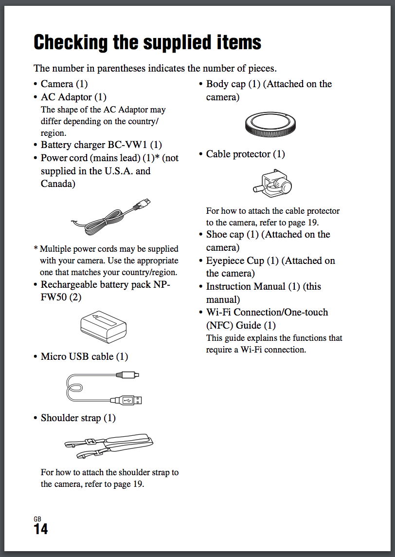For example, in Sony’s documentation for their ILCE-7RM2 DSLR camera, they want their customers to check that all the parts were included with the product. They use visuals to show their customers what some of the parts look like, instead of just relying on technical names.