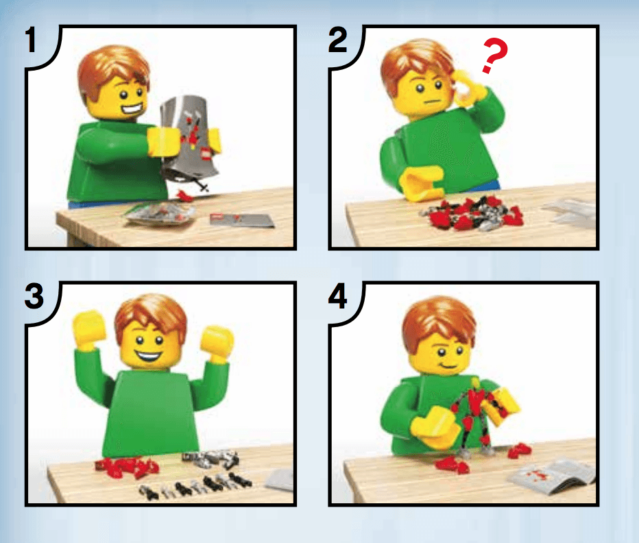 Lego, for example, provide extensive libraries of documentation for constructing their many products. They use a mixture of illustrative visuals (the purpose is to add interest to the documentation) and instruction visuals (to explain something more clearly).