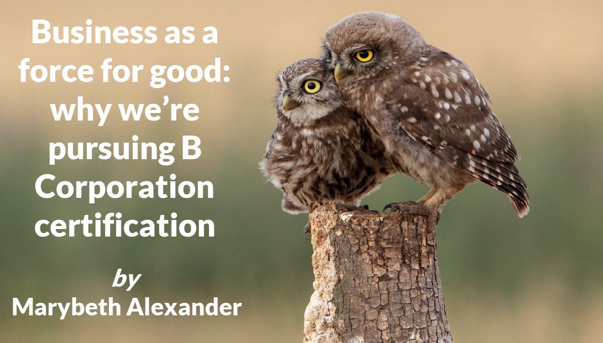 Back in the beginning of May, someone asked me again about our plans for KnowledgeOwl, what success would look like to me. And I brought up B Corp again.